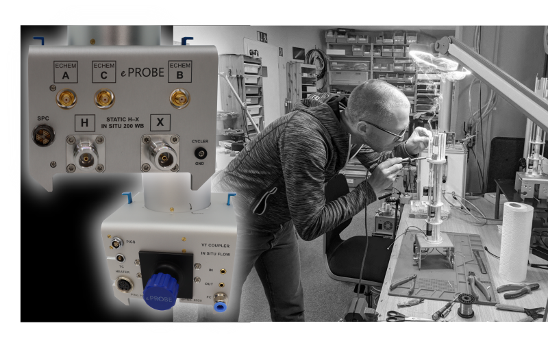 ePROBE manufactures static, solid-state in situ/operando NMR probes for energy storage materials research including batteries, supercapacitors, and flow chemistry/redox flow cells. Our probes combine the NMR/RF features with an electrochemical setup. Combined with our controllers and accessories, we offer complete technology solutions for in situ NMR applications of any kind.